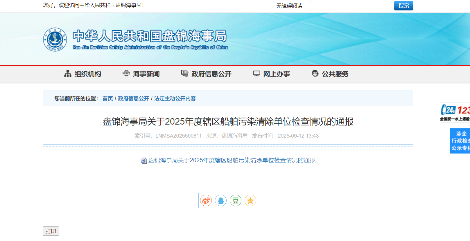 (4)污染物委托处理单位需具有国家规定资质,并在盘锦海事局备案;此外,双方需要签署污染物处理协议,并报盘锦海事局机构;