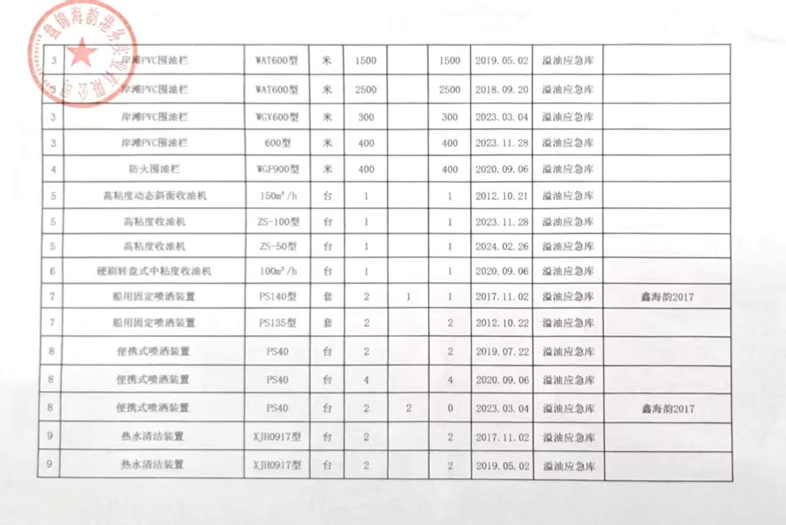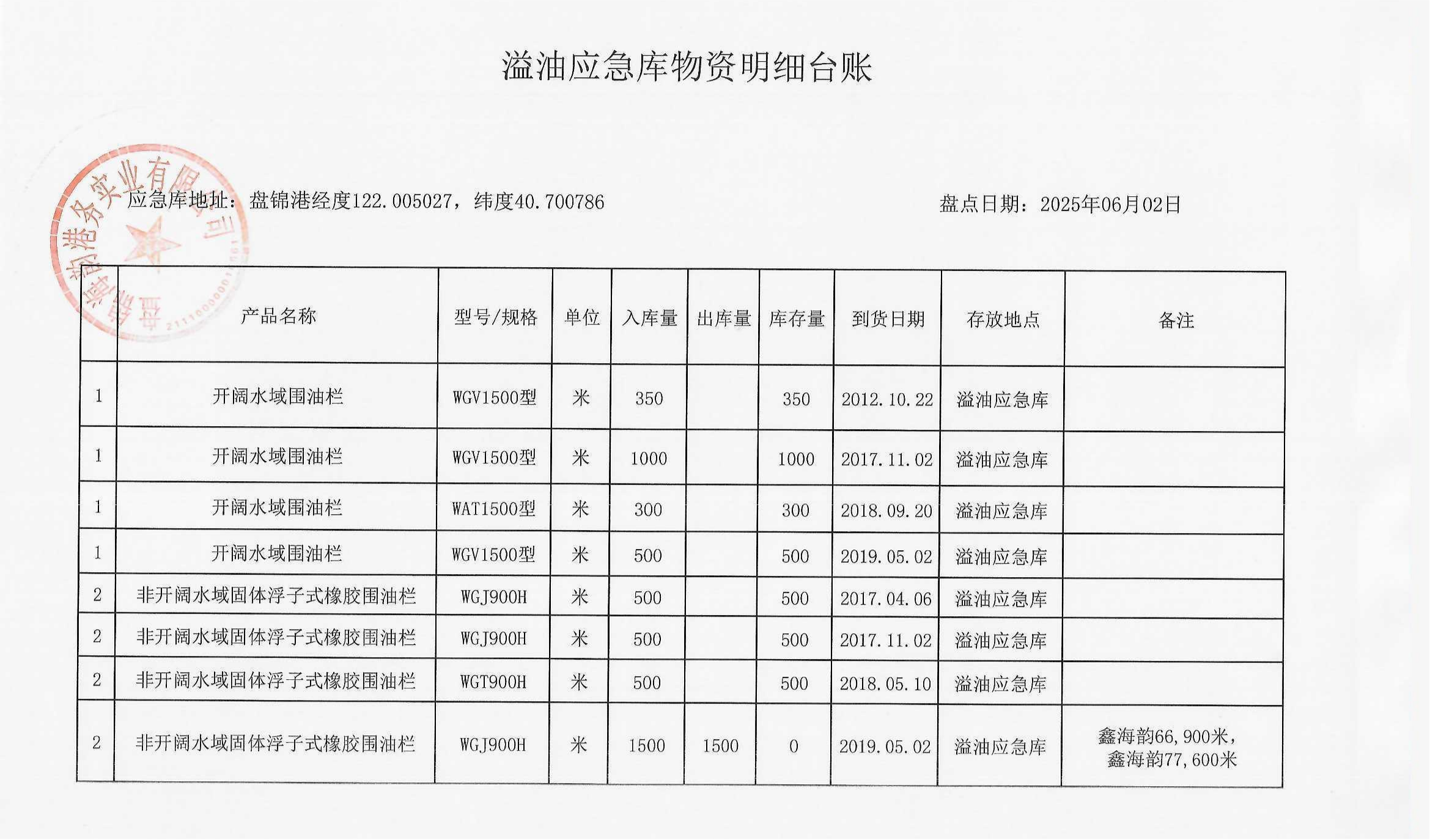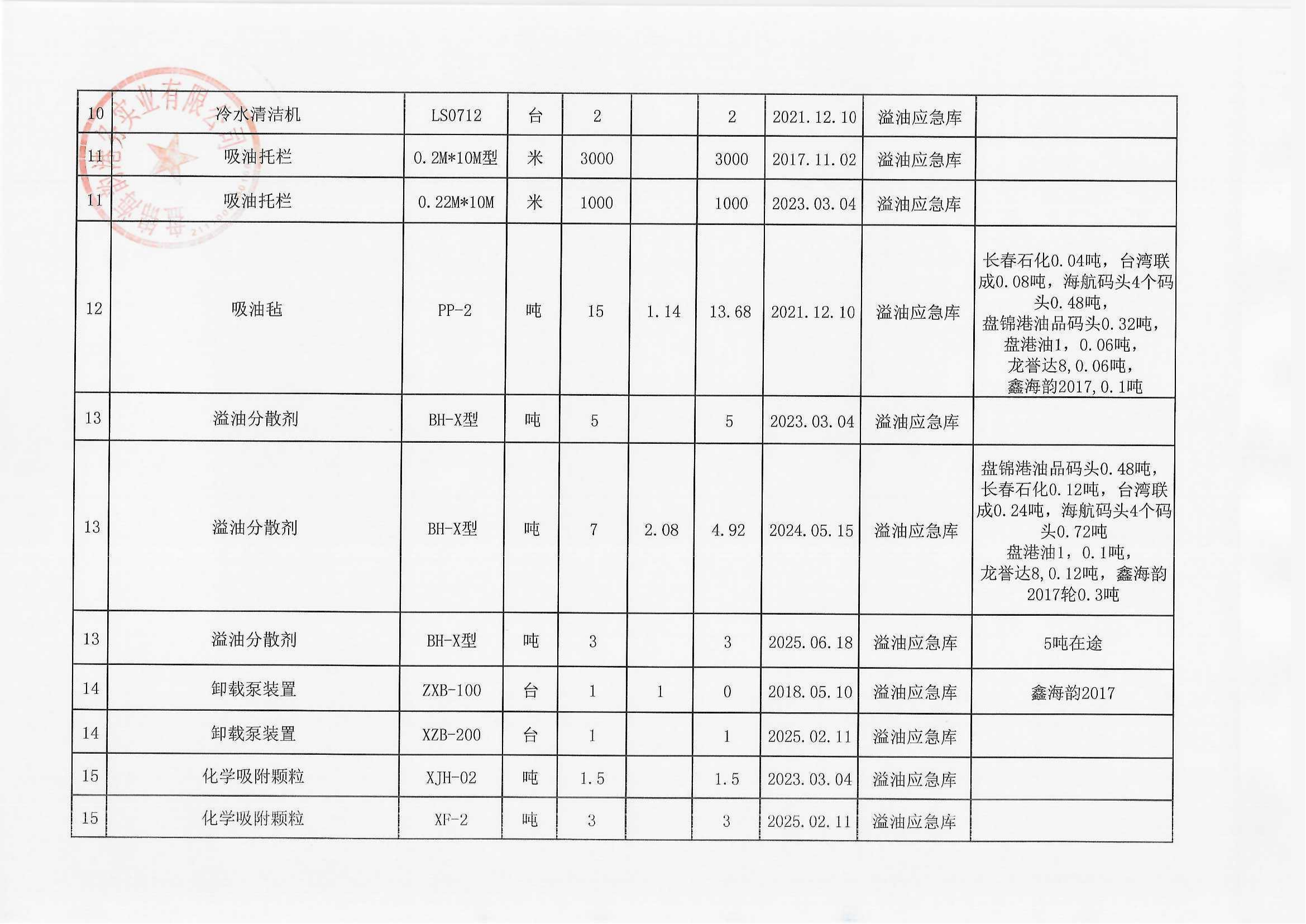 附件2溢油应急物资明细台账一览表