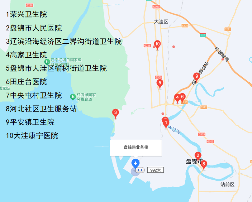 图2附近医院位置平面示意图