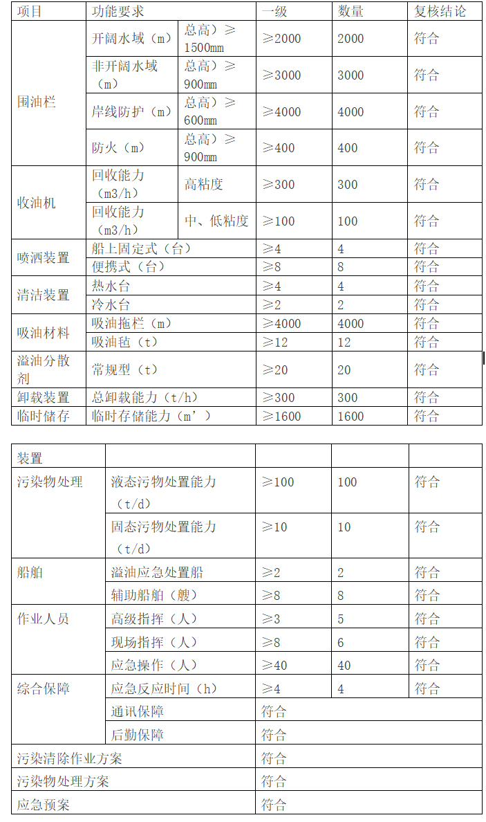 根据《防治册舶污染海洋环境管理条例》、《中华人民共和国船舶污染海洋环境应急防备和应急处置管理规定》以及《船舶污染清除单位应急清污能力要求》等相关要求,我公司应急清污能力符合《船舶污染清除单位应急清污能力要求》一级船舶污染清除单位资质的规定;制定的污染清除作业方案符合防治船舶及其有关作业活动污染海洋环境的要求;污染物处理方案符合国家有关防治污染规定。辖区海域服务范围40海里,防污染溢油应急事故处理能力100吨以内。